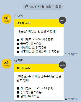 오늘 셀트리온 배당금이 입금되는 날이었습니다.
