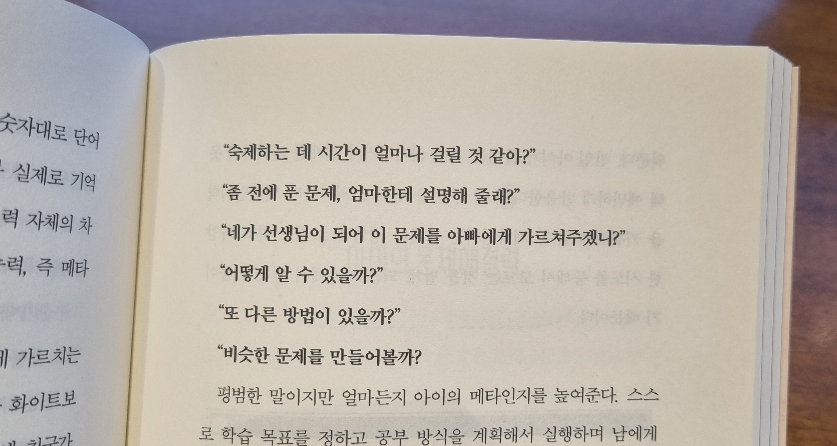 *아이의 메타인지력 즉 자신의 생각과 앎에 관해 아는 능력을 갖추어야 한다. 스스로 적정한 시간을 분배하고, 계획대로 실행, 잘한 점과 부족한 점 파악하는 습관을 들여야 한다.