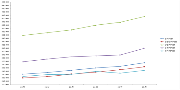 | 기타직종(11) | 239,470 | 245,273 | 252,767 | 257,558 | 264,351 |